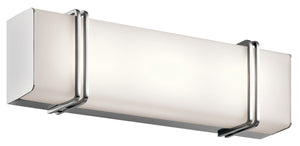 The Impello 18.25" LED linear vanity light features a classic look with its Chrome finish and satin etched white glass.The Impello vanity light gives your bathroom a bold statement and works perfectly in a bathroom or powder room and has a traditional and modern look.