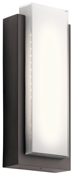 The Dahlia 18.75" LED outdoor wall light with white glass Architectural Bronze finish. The Dahlia features a sophisticated, crisp edge detail giving a contemporary look.