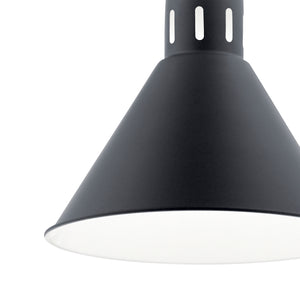 Welcome in a new look of modern industrial, with the Zailey 1-light cone pendant. Featuring an industrial silhouette and cut-out detailing paired with a black woven cord, this pendant packs a punch of contemporary style. Its metal shade provides a beautiful, ambient lighting to the entire room. Plus, its on-trend finish options and adjustable height allow for ease of incorporation into any space it encounters.