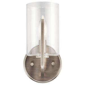 The Nye 9.75" 1 light wall sconce features a mid century modern design in Brushed Natural Brass and clear glass. A perfect addition in several aesthetic environments including contemporary and transitional.