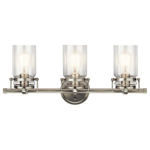 Brinley 24" 3 light vanity light features a modern vintage look with its Brushed Nickel finish and clear glass. Inspired by mason jars, the Brinley vanity light is perfect in several aesthetic environments, including modern vintage and transitional.