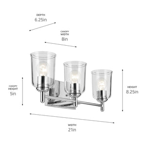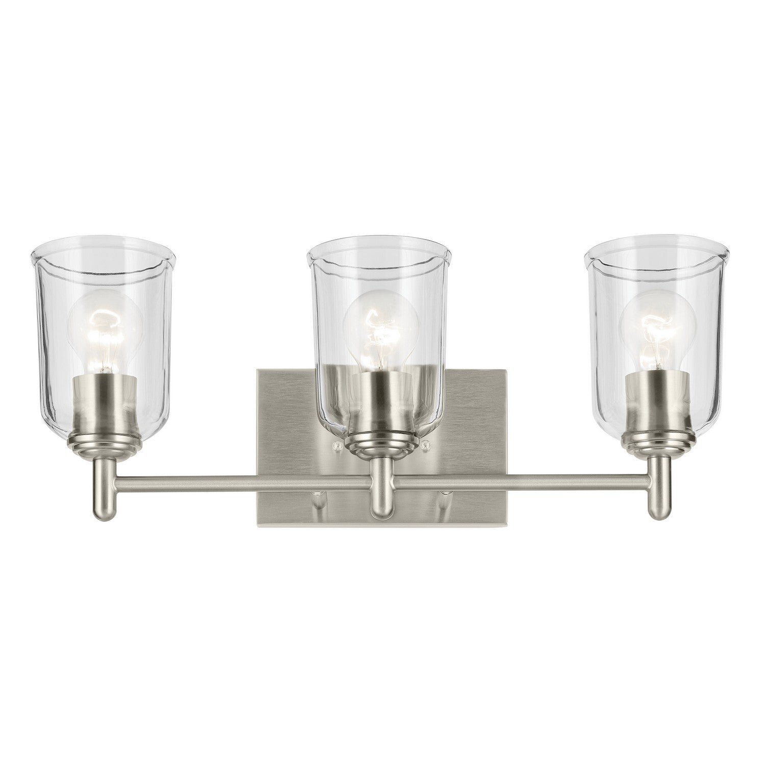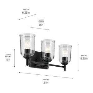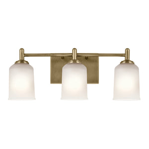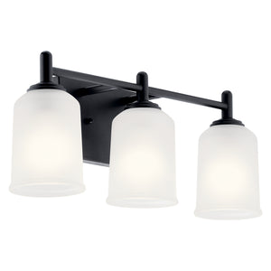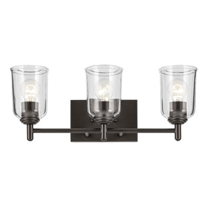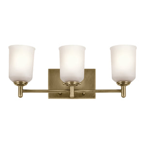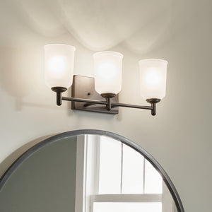 The Shailene 21" 3 light vanity light features a classic look with its clean lines in Olde Bronze finish and satin etched glass. The Shailene vanity light works in several aesthetic environments, including traditional and transitional.