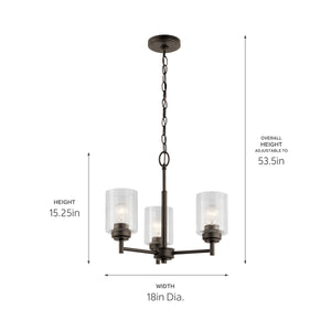 The Winslow 15.25" 3 light mini chandelier features a classic look with its Brushed Nickel finish and clear seeded glass. Winslow chandelier is perfect in several aesthetic environments, including traditional and transitional.