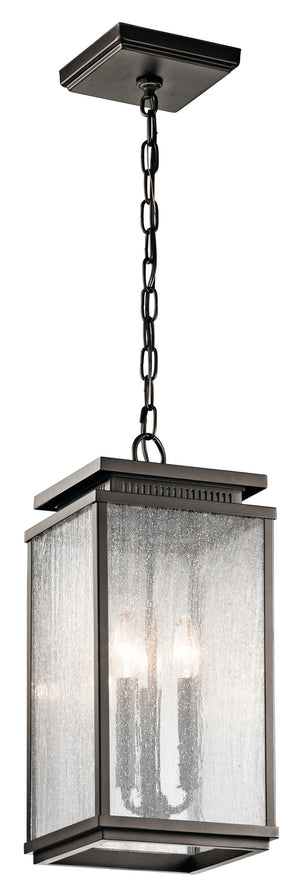 You'll love the traditional elements of this 3 light outdoor pendant from the Manningham collection. The Clear Seedy glass partners with the strong lines and detailed cap accents in Olde Bronze creating a colonial inspired illuminating dream for the outside of your home.