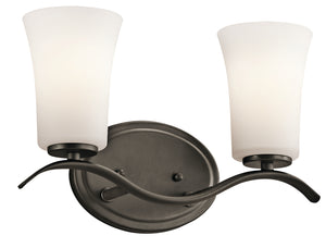 This 2 light bath light from the Armida collection is filled with distinctive touches, clean lines and simple structures. This silhouette brings height and dimension to the Brushed Nickel finish. May be installed with the glass up or down.