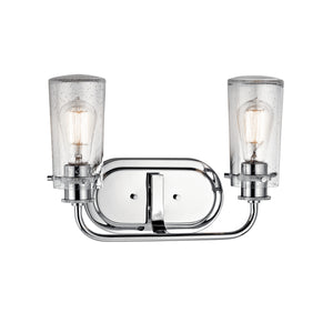 The Braelyn 14.75" 2 light vanity light features an Chrome finish and clear seeded glass shades. The Braelyn offers a vintage industrial design that works well with rustic, country and lodge décor.