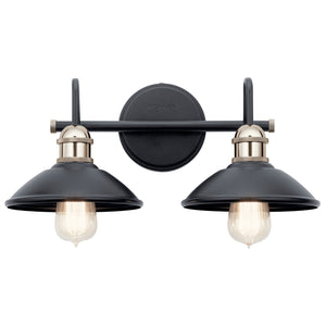 Bring a touch of the outdoors in with Clyde's 2-light 16.75" bath light. A Black, a vintage-inspired socket and diamond knurl banding enhance the industrial look.