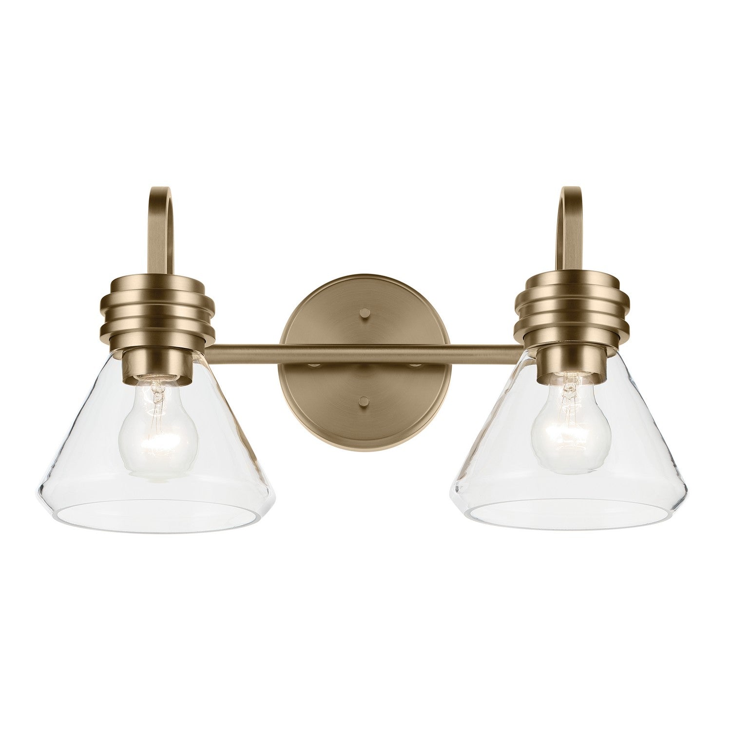 With its refined shape, the Farum 2-light vanity complements many bathroom styles. Taking its inspiration from the structural elegance of military jacket tailoring, Farum's clean frame showcases subtle stepped detailing and its clear glass provides ambient lighting to the entire room. Plus, it offers an elegant black with champagne bronze combination that's on-trend. Farum easily incorporates into a variety of environments including modern.