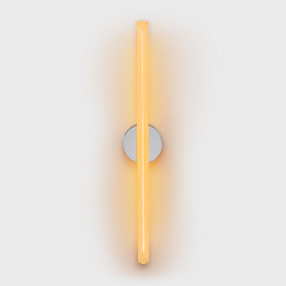 Named in reference to the delicate confluence of the linear light source and central pivoting fixture, the light frosted finish subtly exposes and celebrates the internal filament when illuminated while maintaining the form of a typical S14d light source. The Kilter Wall Light fixture is available in White, Dark Grey, and Solid Brass enamel finishes and is rated IP44, making it an ideal bath bar or vanity light. The Kilter light source is available in two lengths - 640mm and 500mm - and two color temperatures - 2200K and 2700K.