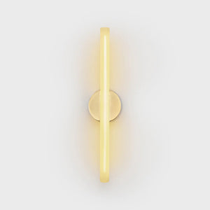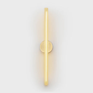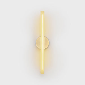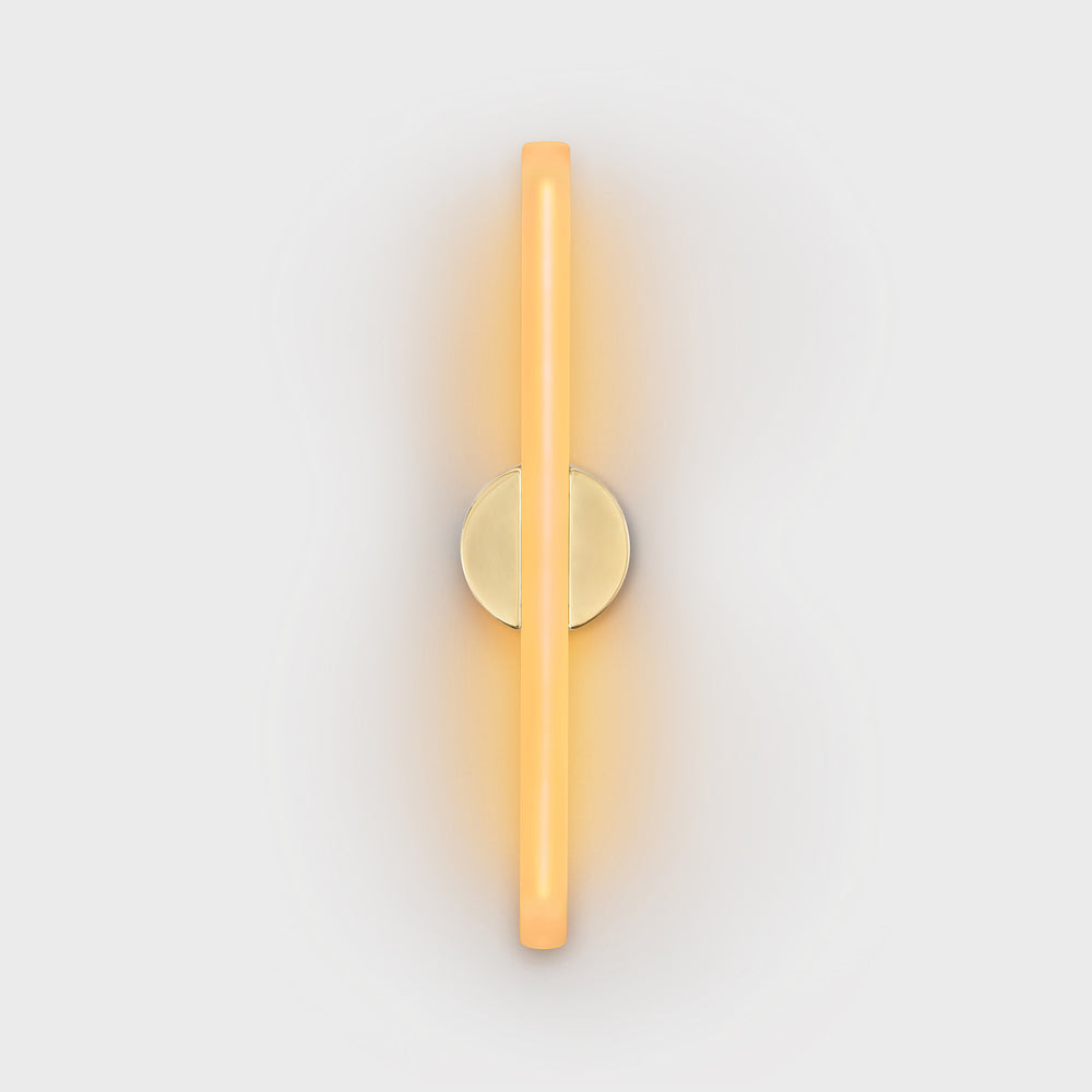 The Kilter Wall Light is our take on an architectural lighting staple. Named in reference to the delicate confluence of the linear light source and central pivoting fixture, the light frosted finish subtly exposes and celebrates the internal filament when illuminated while maintaining the form of a typical S14d light source.