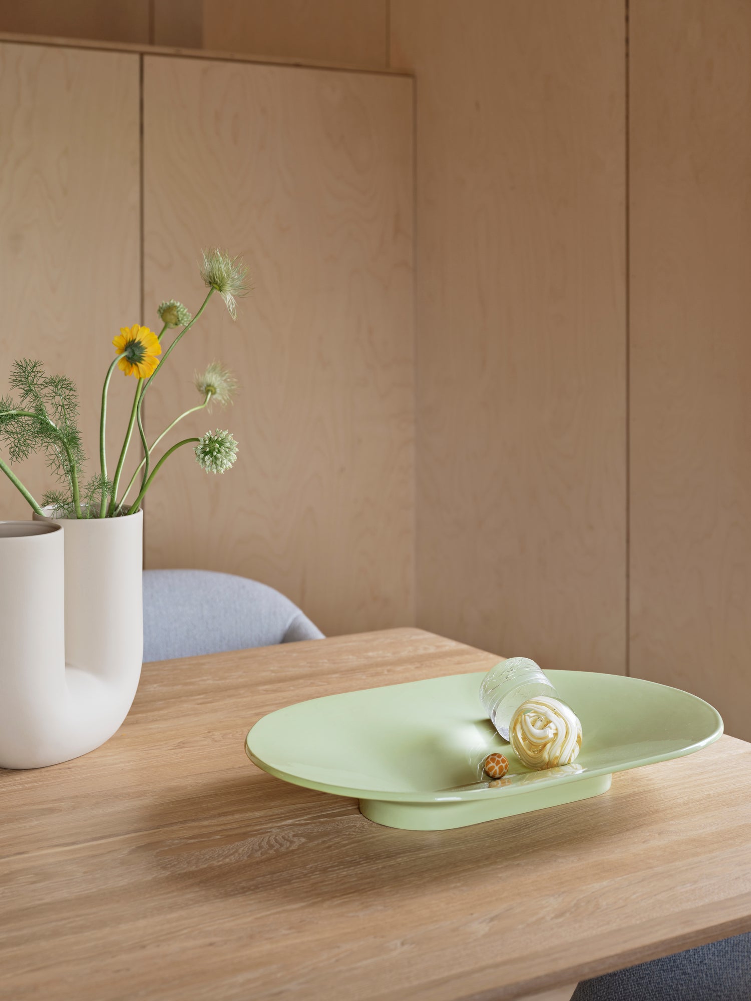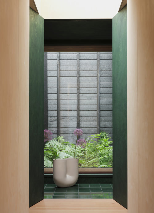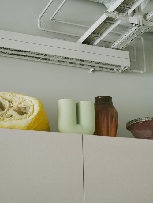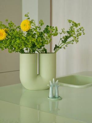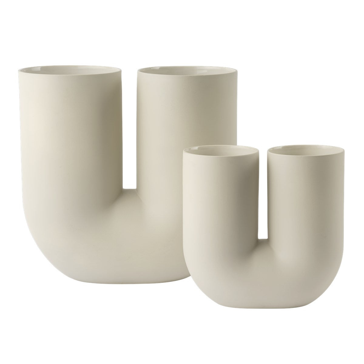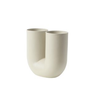 The Kink Vase brings a contemporary form to the archetypal flower vase through traditional craftsmanship and playful design language. With its double opening, the Kink Vase adds a sculptural sentiment to the room, even when not in use. The vase's satin-glazed finish provides a refined, tactile feel that enhances its contemporary design. Available in two sizes, both are perfect for displaying flowers – use the larger Kink as a statement floor piece or sculpture, while the smaller size suits shelves, countertops, and windowsills.