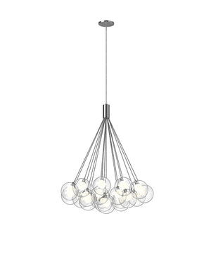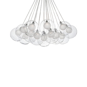 Produced in an array of configurations, the Bolla series is defined by the iconic double-wall glass globes. A frosted globe is perched within a transparent orb producing diffuser light from the satin aluminum LED socket. While elegant as a single pendant, the optional clustered bouquet creates a stunning impact.