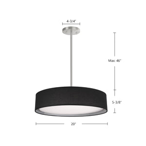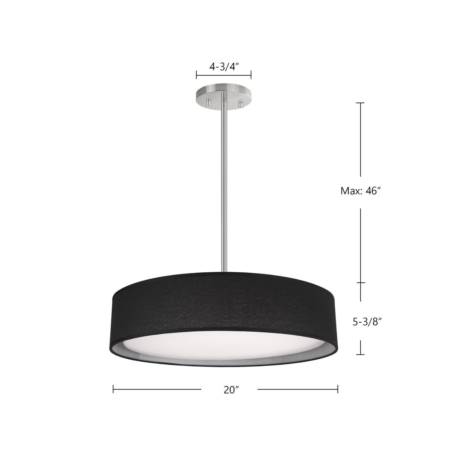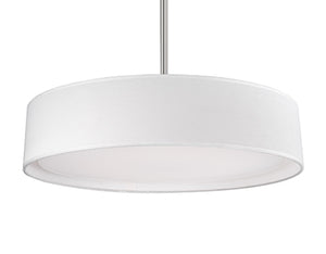 An organza or textured linen band surrounds a concentric polymeric diffuser spreading even light from the LED source. Finely hand-tailored, the fabric shade contributes a soft sophistication to the modern interior. Applicable as a flush mount, pendant and in numerous sizes and fabric colors to suit your context.