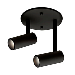 Recessed within the minute barrel of the quintessential adjustable lamp is a spot light assembly applied across the X line. By utilizing slim AC LED boards the canopy scale is reduced to a fundamental trim plate and minimizes the visual footprint of the functional fixtures. Available in two petite cylindrical sizes and a single or multi-light configuration.
