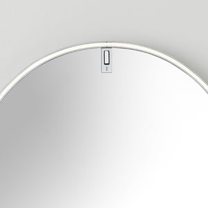 The mirror is made of .24" extra-clear glass, with a layer of safety and aesthetic film to the rear, and it is fixed to the frame by means of a polycarbonate glazing bead. La Plus Belle mirror is hung from the wall by means of a hook with a dual magnet fixing device to keep it in position. It is powered by means of a wall-mounted power supply unit or IEC power cord and connector socket. The optic sensor command fitted to the mirror or remote 0-10/1-10 V - PUSH - DALI control can be used as a dimmer to adjust the light intensity by 10% to 100% in either direction.