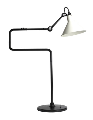 Steel table lamp. Bernard-Albin Gras created the Lampe Gras for industry and design offices. It is remarkable for its ergonomics and the simplicity of its mechanics, which give it a foolproof robustness. Lampe Gras No. 317 is ideal on a desk or a large worktop. Its increased elongation thanks to its double elbow increases its utility (and style).