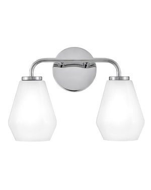Subtle geometric elements find harmony within the sleek, curved lines of Gio. The cased opal glass covers the space in functional, diffused light while providing a nice contrast to the bold variety of finish colors. Gio's transitional glam design and clean profile add to any bath décor.