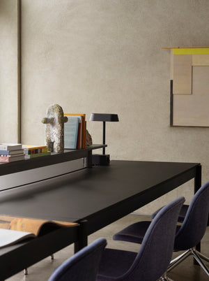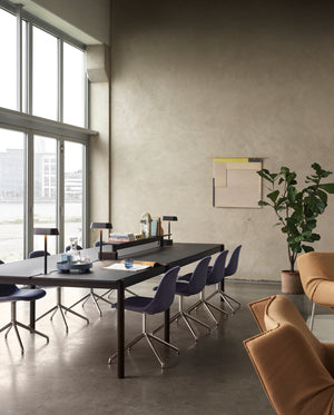 The Linear System Table is a simple yet refined table with subtle details and references to the Scandinavian design heritage. Its legs are cut into half-circles and joined with the table for a light appearance, while the slender overhang at both ends of the table makes for a refined expression. The Linear System Table is available as a freestanding table, in predesigned configurations, or as modules that you can use to customize your configuration. The narrow version of the Linear System Table is ideal for conference and meeting rooms.