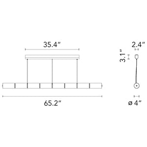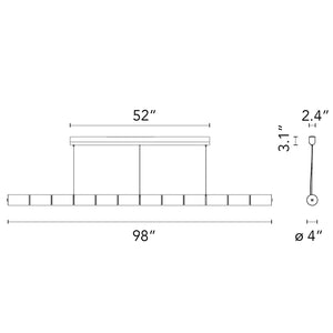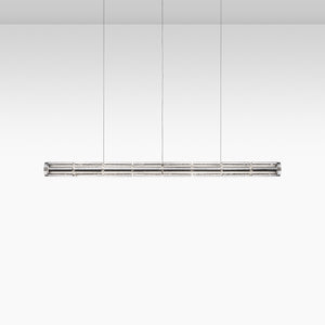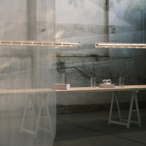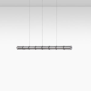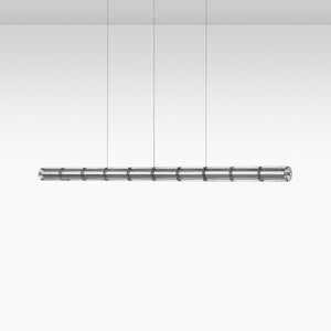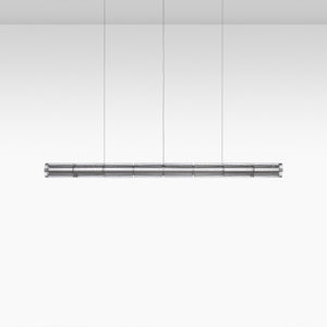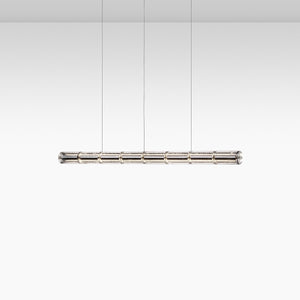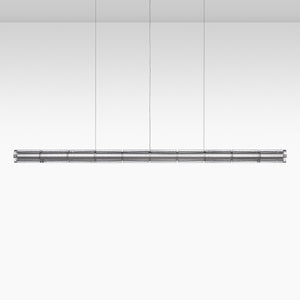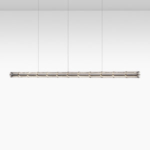 Suspended lamp consisting of interconnected glass modules that reach a length of 1.66 mt. (S1) 2.07 mt. (S2) 2.49 mt. (S3) with 2.70 m suspended power cable.