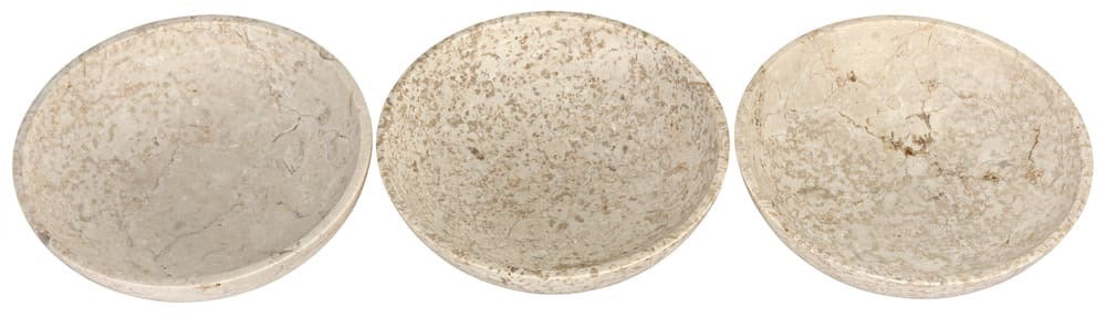 Subtly grained white marble reveals its fascinating variances in these simple but modern bowls. The more the merrier!