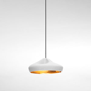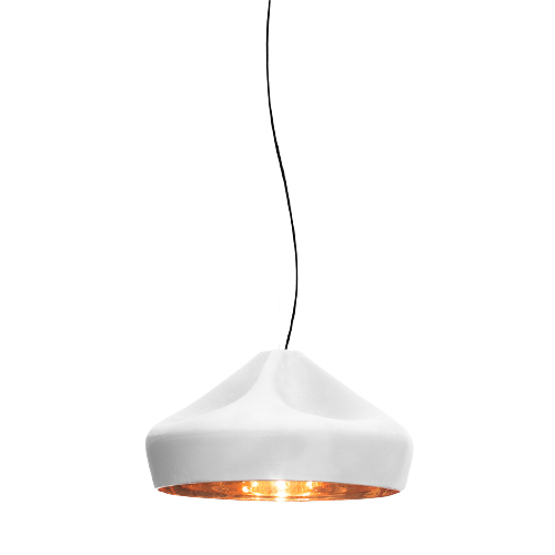 Ceramic is a ductile, malleable material, and every lamp in the collection is handcrafted. Fusing the clay with different enamels has allowed Xavier Mañosa to discover and interpret new light effects. He has gone as far as to play with two different finishes on the inside of the lamp: a brilliant white enamel to create sparkles that enhance the light, and a 24-carat gold plated version that emits extraordinarily warm lighting.