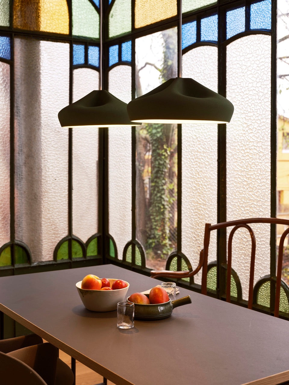 The outside of the lamp comes in the collection’s classic finishes – white, black, terracotta and grey – as well as in the recently added dark green and ochre, two new shades that expand the range of possibilities to combine different sizes, heights and colours. The Pleat Box collection is also available with integrated LED technology, which projects warm indirect light and prevents glare. This lamp shows respect for craftsmanship, care for ceramics and the ingenuity of design.