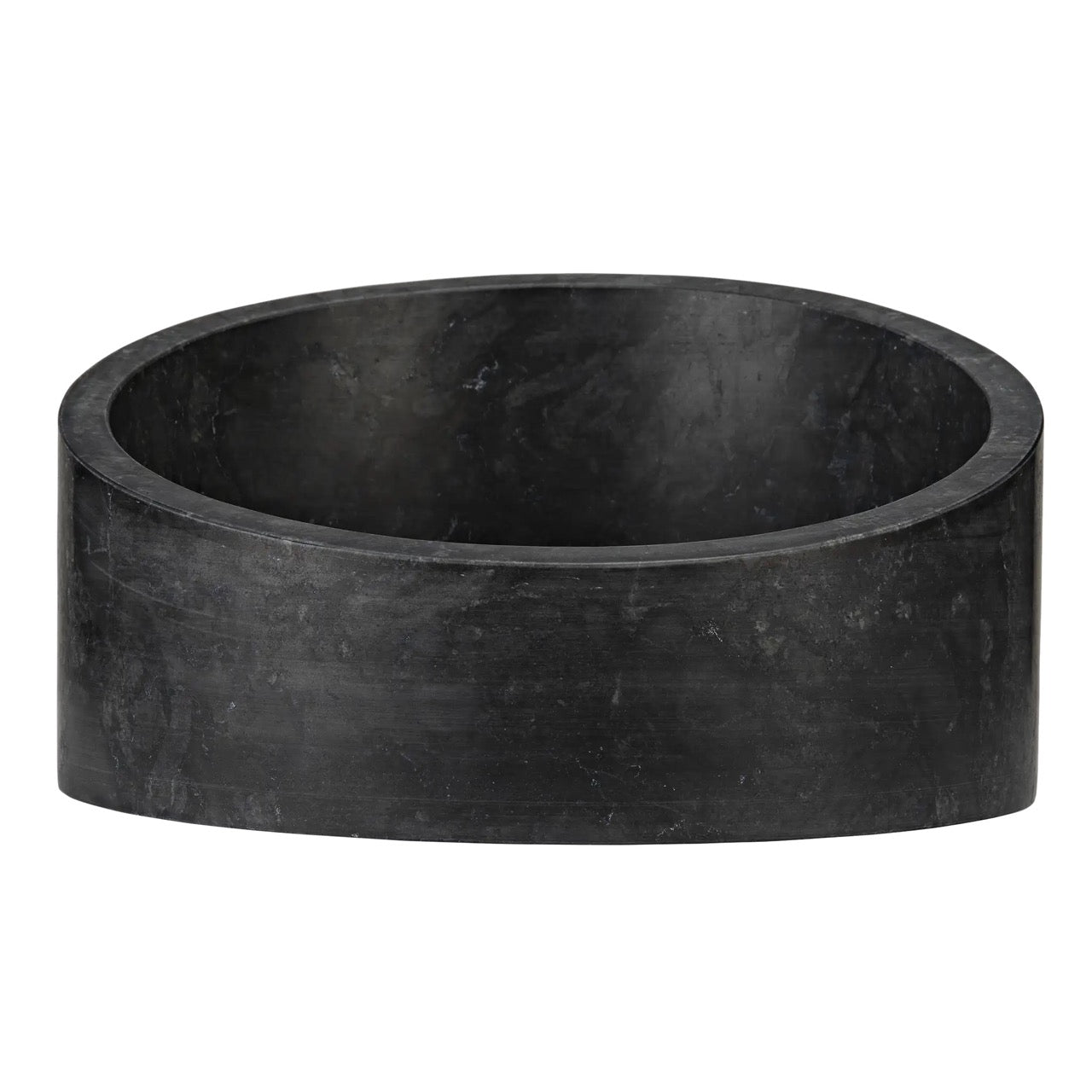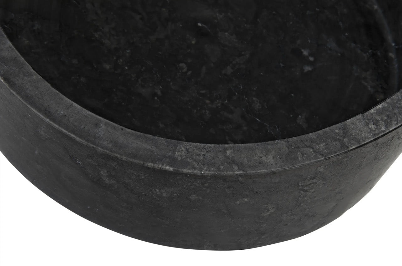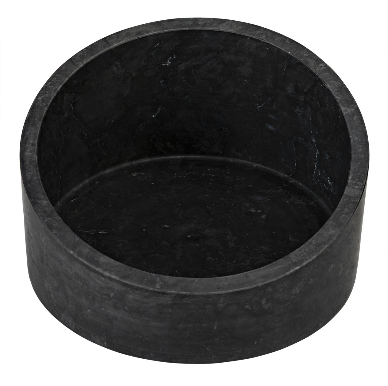 Subtly grained black marble reveals its natural variances in this bold cylindrical shape container with angled edge. A catch-all, a vase, a centerpiece, a simple but bold statement, the choice is yours! Artisan crafted of solid black marble and designed with simple lines to allow the natural material center stage. The stone we work with was chosen for the beauty of its natural striations and veining. No two pieces of marble are the same, and each of our marble objects will therefore be unique to themselves.