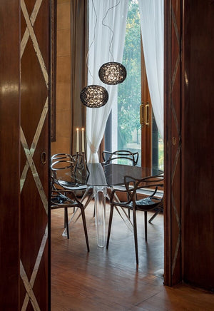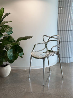 The Masters chair is a clear tribute to three symbol-chairs, reworked and reinterpreted by Starck’s creative genius. The unmistakable silhouettes of Arne Jacobsen’s “Serie 7”, Eero Saarinen’s “Tulip Armchair” and Charles Eames’ “Eiffel Chair” entwine in a sinuous hybrid, creating a fusion of original and attractive styles. Light and practical, Masters can also be used outdoors. Also available in metallic finishes which convey and extra special effect.