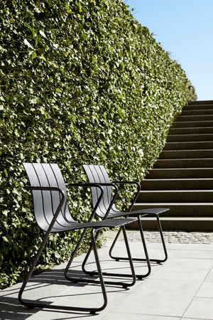 The Ocean Collection is a re-imagined table-and-chair collection (originally designed in 1955) in ocean waste plastic, combining innovative solutions to prevent pollution of the world’s oceans - with one of the 20th century’s most renowned designers, Nanna Ditzel. The series is characterized by its light structure with repeated slats and metal frames, made and tested for outdoor use.