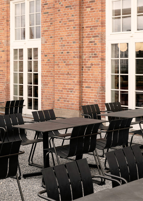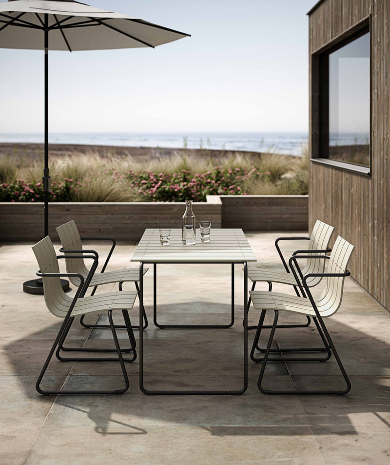 The Ocean Collection is a reimagined table-and-chair collection (originally designed in 1955) in ocean waste plastic, combining innovative solutions to prevent pollution of the world’s oceans - with one of the 20th century’s most renowned designers, Nanna Ditzel. The series is characterized by its light structure with repeated slats and metal frames, made and tested for outdoor use.