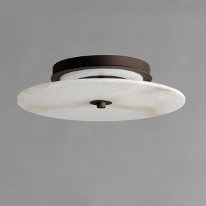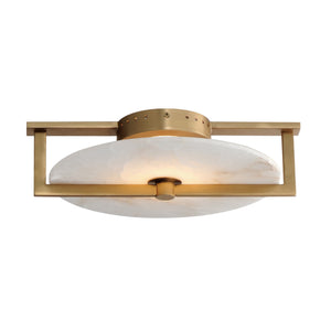 Modern in execution, the Quarry collection features natural Spanish alabaster in an iron frame finished in Darkened Bronze or Natural Aged Brass. Dedicated LED housing shine light on alabaster panels, highlighting the stone's beautiful, veined characteristics while also providing ambient lighting. These surface mounted fixtures are designed to install on either wall or ceiling surfaces.