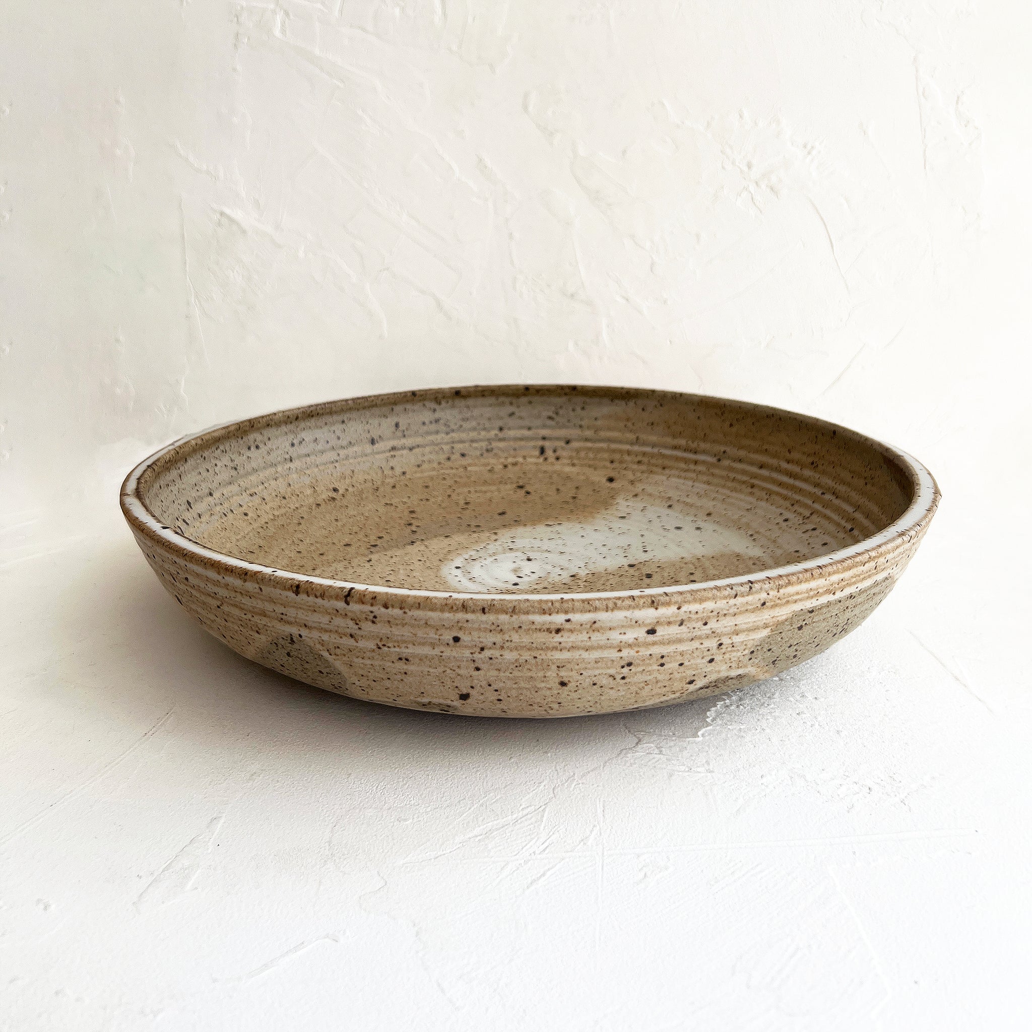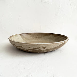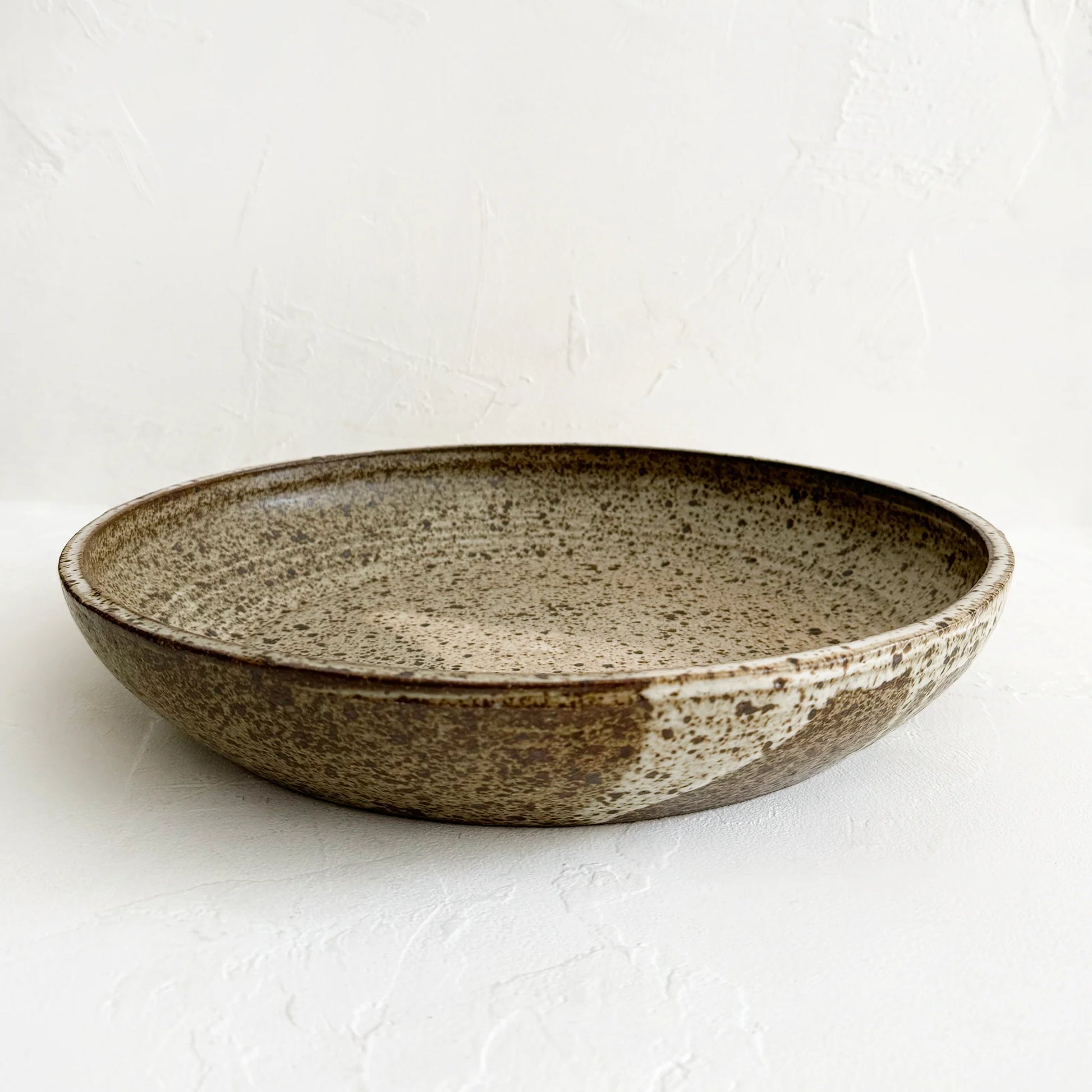 Serving bowl in a matte glaze with a swirl of peach, brown, cream and green tones. Wheel thrown. Lightly speckled and wabi-sabi feels.