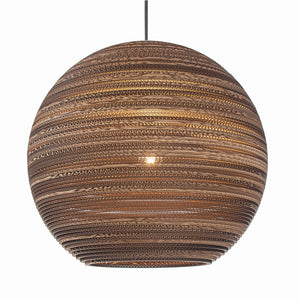 Scraplights are constructed from natural recycled cardboard precision cut by a laser. This gives the edges their classic dark appearance and enhances the warm light projected through the corrugation. The classic series includes many of the best-selling models such as the Moon and Disc, along with newer designs like the Hive and Nest.