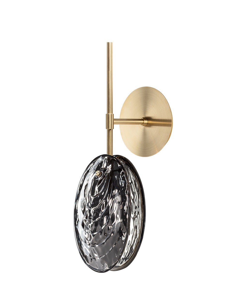 Elegance, variability and an organic aesthetic, BOMMA introduces new MUSSELS collection. Imagine sparkling water hiding fascinating, incredibly detailed mussels. Two crystal shells surround a light source nested in a precise mounting within either glossy anthracite or brushed gold tones. The glass shell carries a rippling patterned imprint. When lit, it creates the effect of light reflecting from a water surface. Its inspiration in organic shapes, natural colors and the natural environment is apparent at first glance.