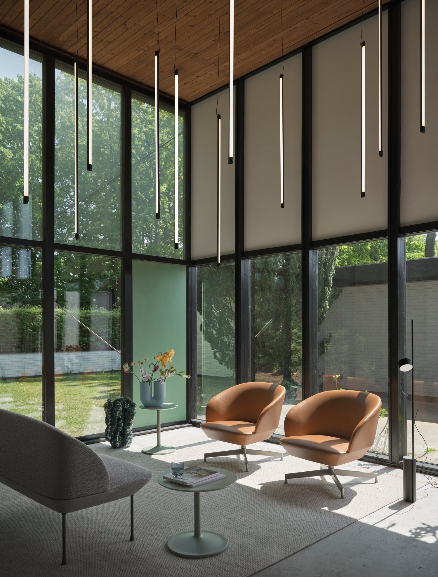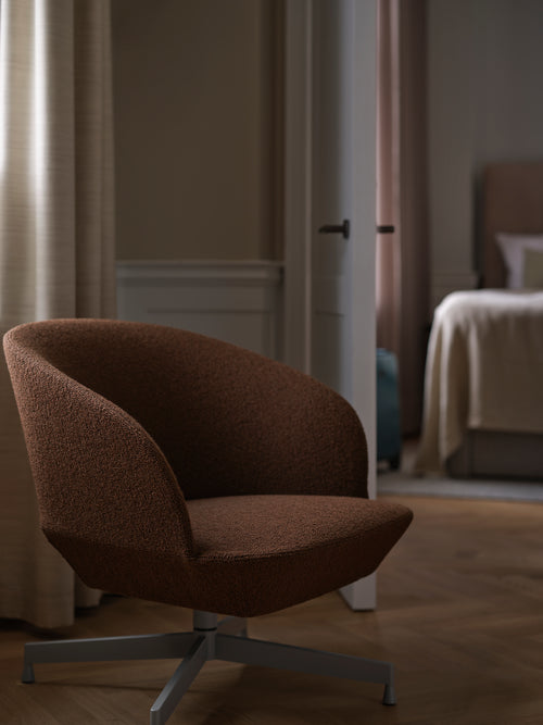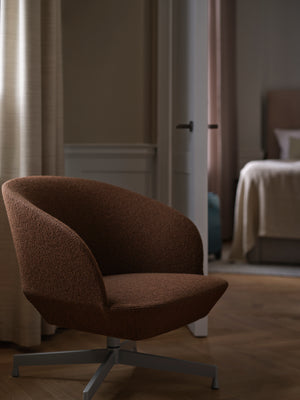 Marrying its compact design with comfort and elegance, the Oslo Lounge Chair offers an inviting and dynamic seat with a classic yet distinctly modern expression. A low and deep shell is elevated by an embracing back that envelopes and supports. The combination of sculptural qualities and a distinctly functional design makes it an ideal piece for the contemporary home and public spaces alike. The Swivel base adds a classic and dynamic feel to the chair as it facilitates flexibility and movement while seated.