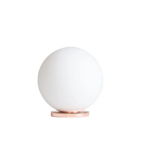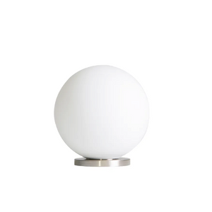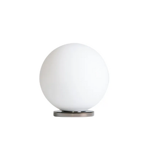 Table lamp with diffused light not dimmable. Galvanized metal frame. Diffuser made of opalyne blown glass with satin-finish. Transparent power cable, switch and plug. European two-pole plug. Bulb not included.