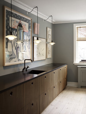 The pendant provides a soft, harmonious and comfortable light distribution with its mouth-blown three-layer white opal glass that primarily directs the light downwards. Poul Henningsen designed it based on his celebrated three-shade system, which he created in 1925 to shape excellent non-glare lighting.