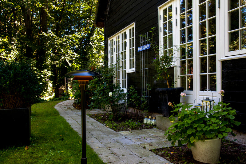 The black painted steel fitting with its matt white tinted inner shades emits a downward directed glare-free, soft and pleasant light. It is one of three PH outdoor lights available.