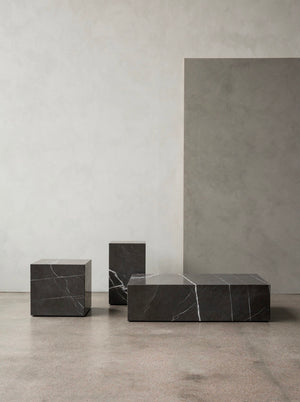 As versatile as it is timeless, the marble Plinth serves the dual purpose of being a beautiful, sculptural piece on its own and highlighting whatever objects rest upon it. The honed marble carries an air of sophistication and elegance to elevate any space. Designed by Norm Architects as a tribute to the particular beauty of marble, the Plinth comes in cubic, tall, and low varieties, as well as a small range of colours including the new brown grey. The heaviness of the Plinth marble stands in contrast to the honed surface; light bounces off of the angles and falls across the tops, producing a spotlight-effect in any space. Though the lines of the podiums are sharp and clean, the naturalness of the marble is at the forefront of its visual identity, creating an intriguing contrast within each piece. From a side table in a private home to a place to display a vase of flowers in a restaurant, Plinth podiums provide an unparalleled surface.