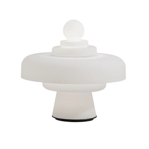 Inspired by the game of chess with their sinuous shapes, Re and Regina are the key characters of the chessboard. Their profiles stand out clearly in the white light diffused by opalescent glass. Real individuals, they play in pairs alternating spheres, cylinders and rings of light. Vertical the King (Re), horizontal the Queen (Regina). They can be placed next to each other or in different spots in the same room, be used as floor or table lamps, on a coffee table or a desk, both Re and Regina have the presence to create a context. The dimmer allows to modulate the light making it a surreal element with different degrees of intensity: an element of representation that releases energy in space when the light is bright, abstract and restful when the light is soft and low. Glass sculptures during the day in environments illuminated by natural light. Re and Regina are inspired by the history of art, from Cosmè Tura to the Flemish interiors of Jan Van Eych to the conceptual imagery of Marcel Duchamp who plays chess as a lifestyle. Re and Regina are Cartesian axes of a universe that crosses ages and cultures. In 2020 FontanaArte reintroduces these glass lamps as a sign of the expressive wealth contained in the great repertory of ideas that is the FontanaArte catalogue and, most importantly an homage to the talent of an artist who had a gift for calibrating the formal tension of a utilitarian object on a quest for unity among the arts.