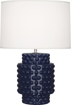 Midnight Blue Glazed Textured Ceramic Dolly Accent Lamp With Fondine Fabric Shade - Our Dolly table lamps are a great choice for adding visual appeal with a raised circle pattern adorning the ceramic body. You can't go wrong lighting your space with this modern twist on a classic shape.