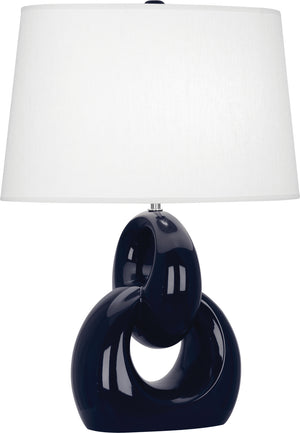 Midnight Blue Glazed Ceramic With Polished Nickel Accents Fusion Table Lamp With Oval Oyster Linen Shade - A contemporary collection, Fusion draws the eye with elegant curves, flowing movement and a design comprised of joined rings.