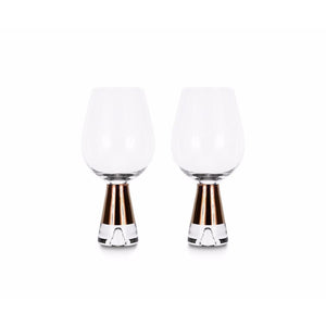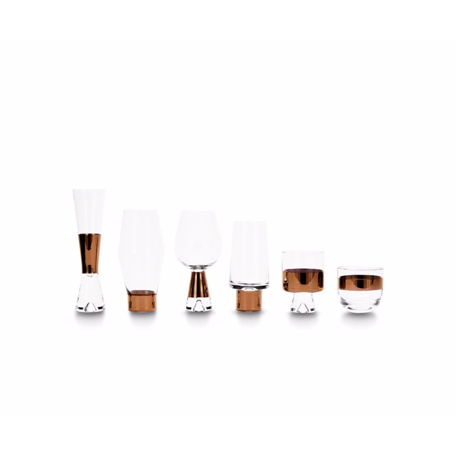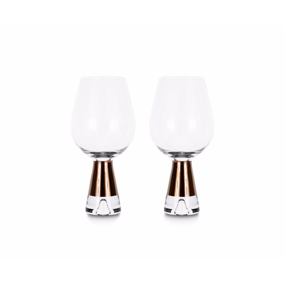 Tank Wine Glasses are sold in pairs. Mouth-blown and ornamented with hand-painted copper detailing they form part of a collection alongside our Tank Decanter, Low Ball, High Ball and Champagne Glasses. A Jug and a set of vases are also part of the Tank range. Presented in gift-packaging.
