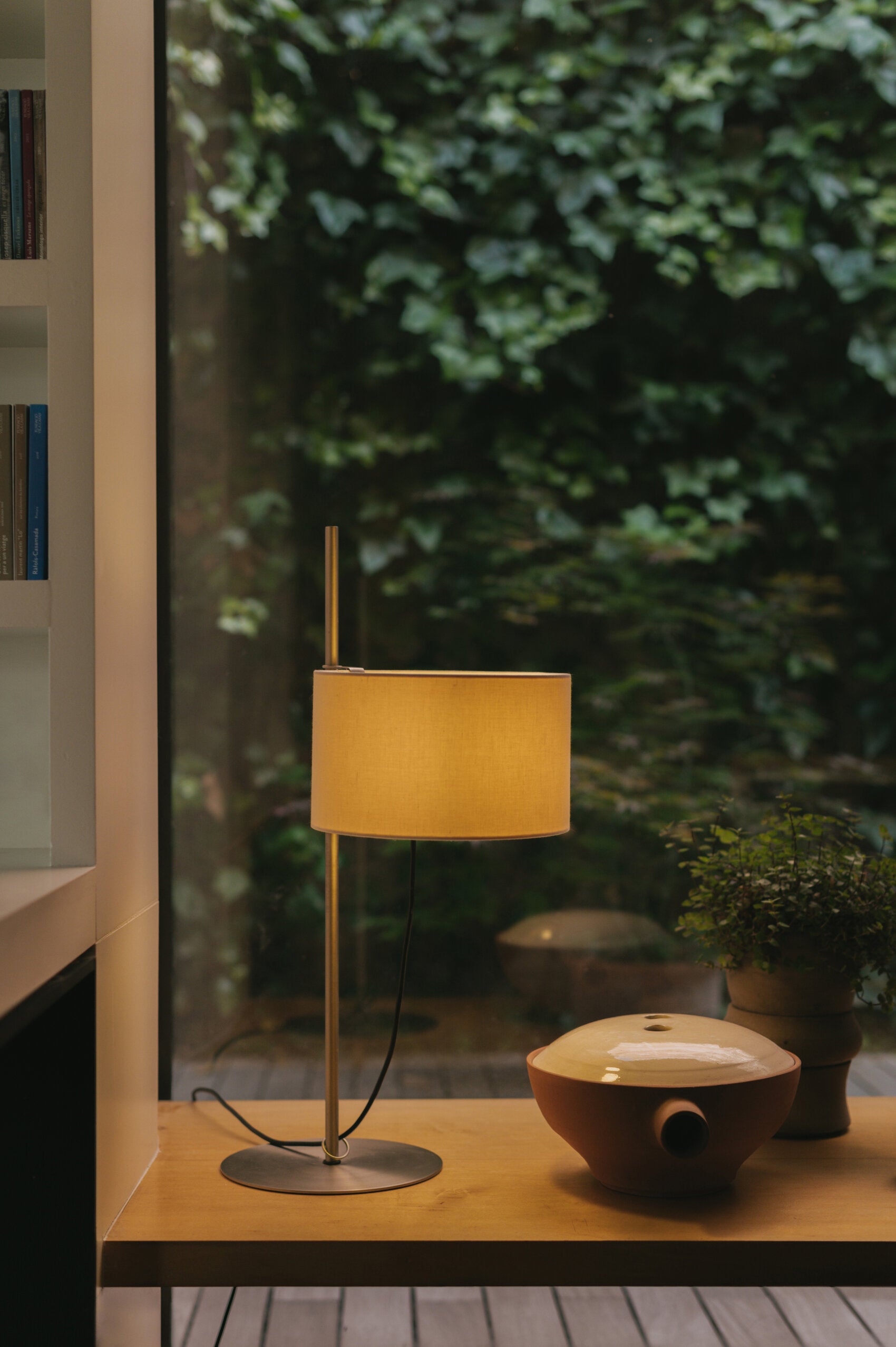 Based on his famous TMM lamp, Miguel Mila was commissioned to design the TMD tabletop version. The designer came up with the idea of a shade that is raised like a flag up a mast.