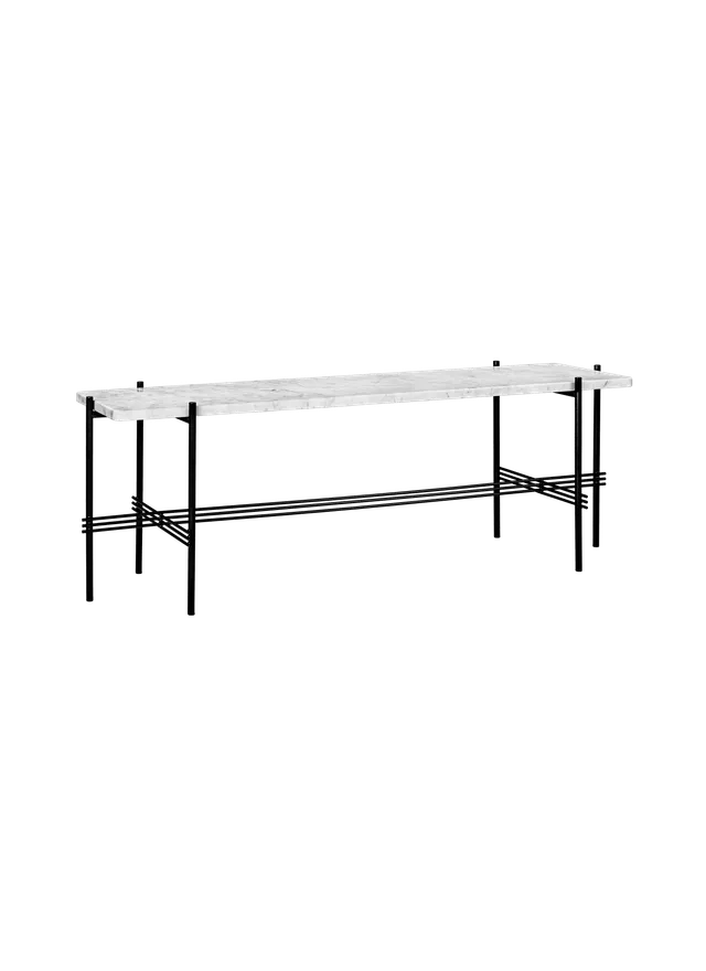 The TS Console creates a sophisticated and sculptural aesthetics for any room with its characteristic slender legs, beautifully crossing details and contrasting solid table top. The rectangular console serves equally well as a storage unit, serving station or media console, featuring either one or two table tops.The timeless TS Console by GamFratesi is extended from the classic TS Table, made for the renowned restaurant The Standard in Copenhagen, where not only its name got its inspiration but also aesthetics and material choices were found.