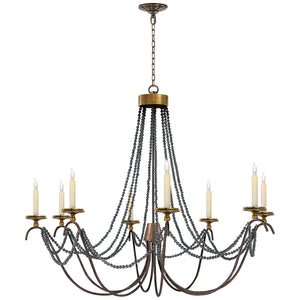 Marigot Large Chandelier in Rust and Old Brass with Tudor Brown Beaded Trim