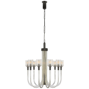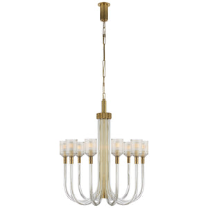 Reverie Medium Single Tier Chandelier in Clear Ribbed Glass and Antique-Burnished Brass