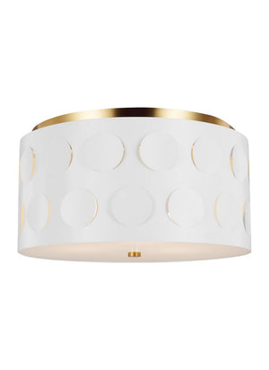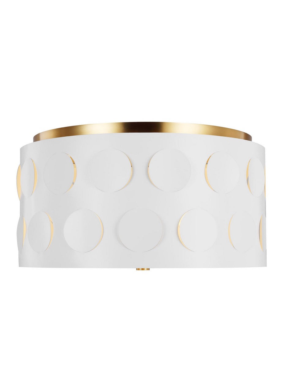 Dots are iconic to the kate spade brand—a simple and playful graphic motif. Dottie takes an iconic kate spade dot motif and cuts it into metal—creating a playful ambient light effect. A classic metal drum shade with an extra twist of perforated pattern. A matte white steel shade with an etched glass diffuser creates a gentle muted glow. Ideal for any hallway, foyer, bedroom, bathroom, or wherever overhead illumination is needed in transitional settings.