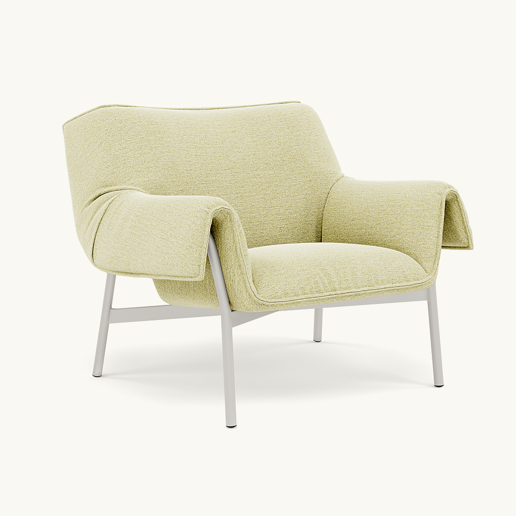 Wrap is a soft Lounge Chair with a blanket-like textile wrapped around its shell, allowing a deep sense of comfort with a strong sense of character. While its design is guided by the search for ultimate comfort, its generous shape is supported by a light steel frame creating a contrasting image of airy lightness. The draped upholstery is a result of extensive research and development as well as craftsmanship and knowhow. The Wrap Lounge Chair is simple, yet refined, combining a sense of ease with a strong design language.
